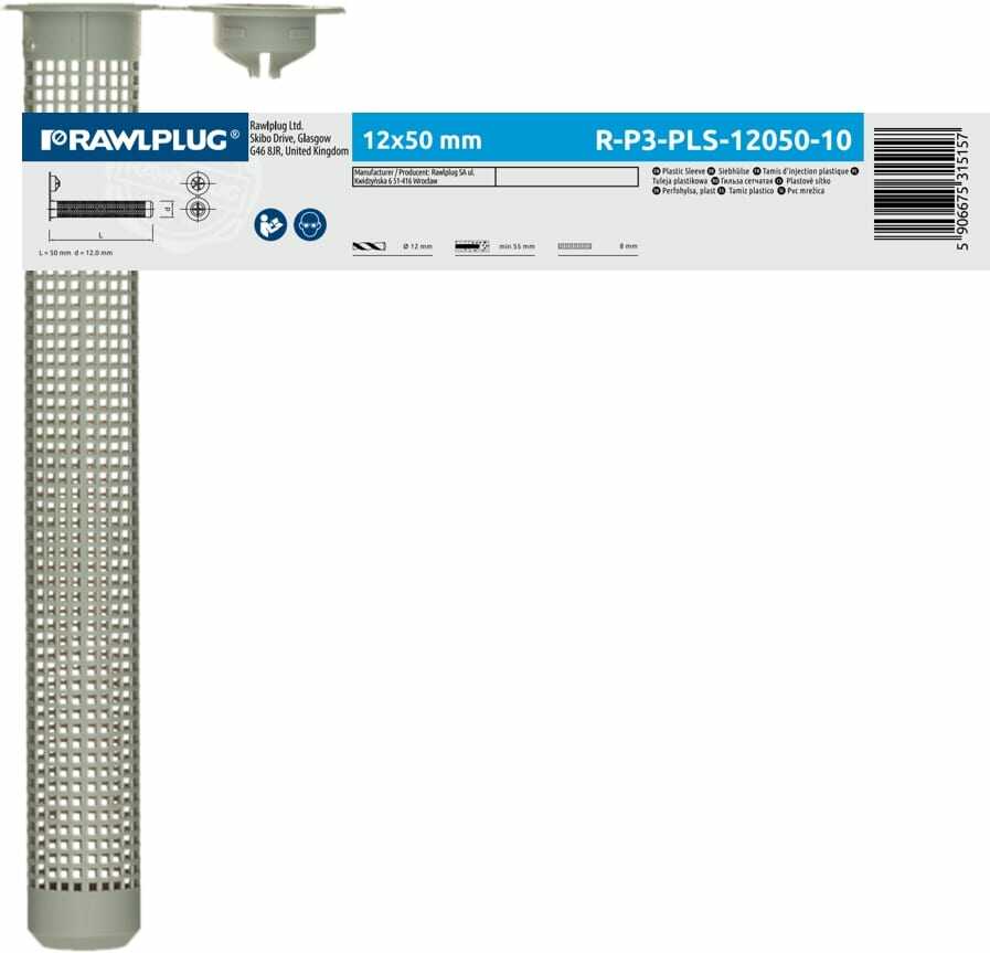 Sită din plastic pentru utilizare cu ancore chimice în substraturi goale
