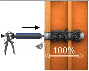 Substraturi goale: Introduceți duza mixerului în partea de jos a găurii și injectați rășină, retrăgând încet duza pe măsură ce orificiul este umplut la 100% din adâncimea sa.