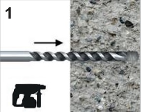Realizați gaura cu un rotopercutor cu percuție. Efectuați gaura la adâncimea necesară.