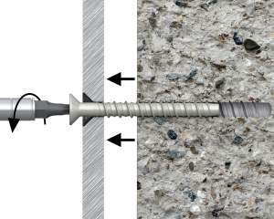 Designul șuruburilor pentru beton permite găurirea și instalarea direct prin elementul fixat