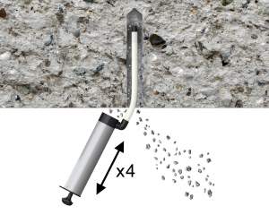 Curățați gaura de praf și de resturi cu pompa de mână.