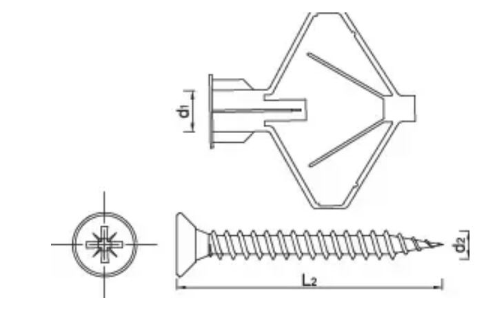 Diblu tip T fluture din plastic cu șurub cu cap înecat GL 10 mm