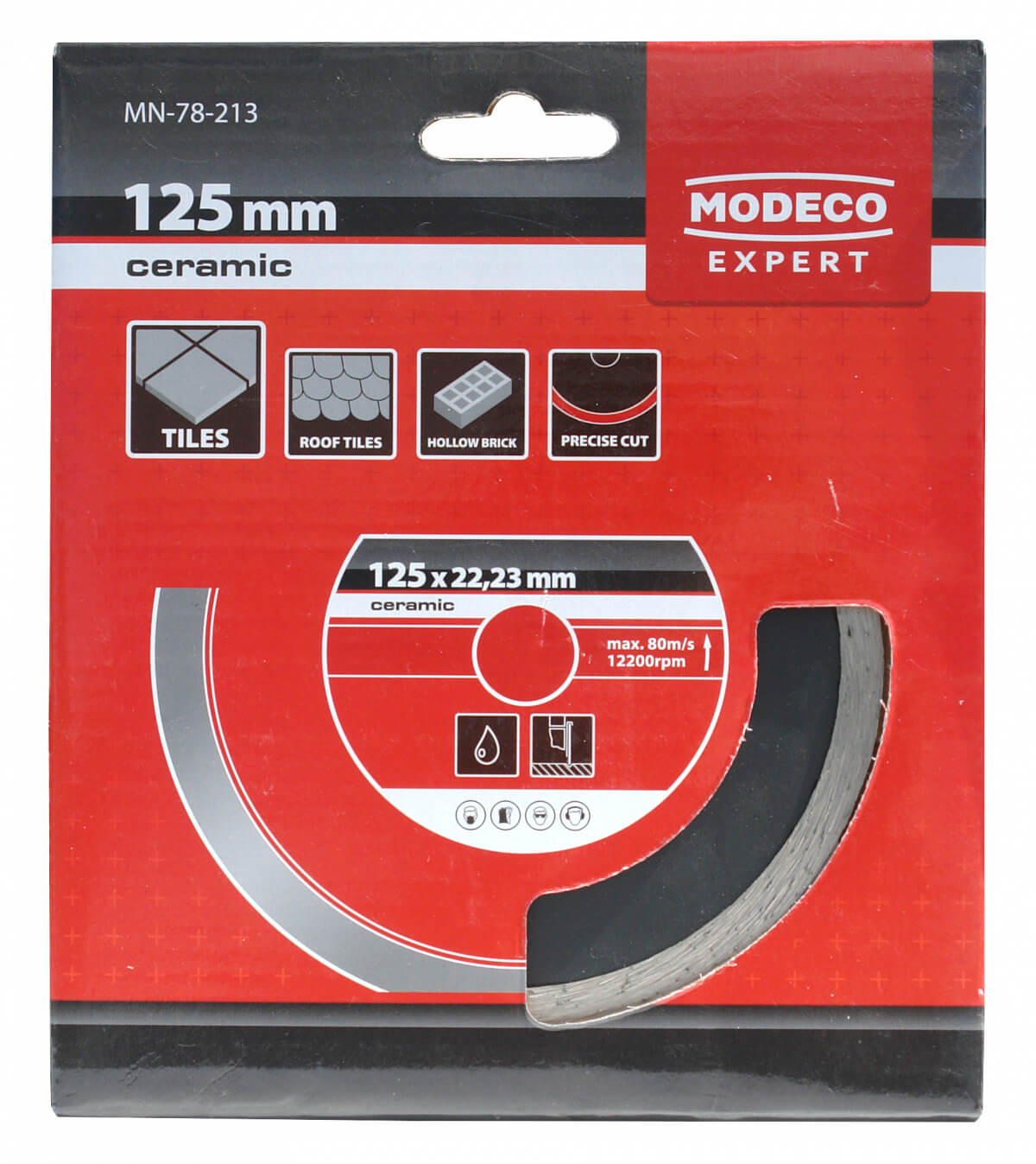 Forma continuă și calitatea înaltă a segmentului discului diamantat vă permit să tăiați cu precizie plăci glazurate și alte materiale ceramice