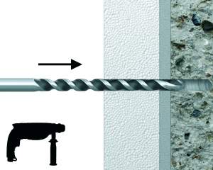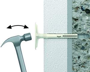 Bateți cuiul în diblu până când se fixează și ajunge la același nivel cu materialul de izolație.