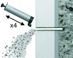Curățați de 4 ori gaura cu pompa de mână.