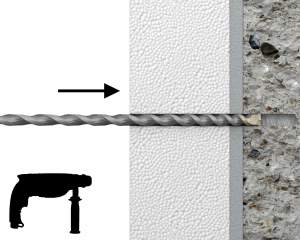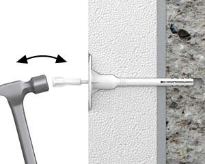 Bateți cuiul în diblu până când se fixează și ajunge la același nivel cu materialul de izolație