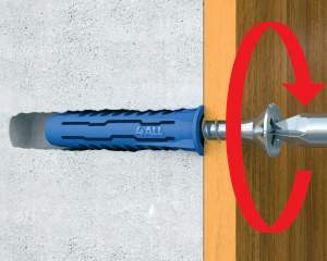 Introduceți șurubul cu diametrul necesar în diblu prin elementul de fixare și strângeți-l.