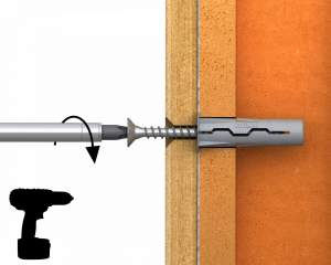 Introduceți șurubul în diblu prin elementul de fixare și strângeți-l.