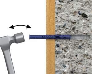 Loviți diblu cu ciocanul până atingeți adâncimea de instalare.