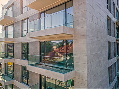 Acest proiect special a fost construit cu materiale naturale, faţade ȋmbrăcate integral în piatră, grădini pe terase și curţi interioare bogate în vegetaţie.