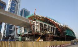 În mai 2005, contractul de proiectare și construcție de 12,45 miliarde AED / 3,4 miliarde de dolari SUA a fost acordat lui Dubai Rail Link (DURL), consorțiu format din companii japoneze, inclusiv Mitsubishi Heavy Industries, Mitsubishi Corporation, Obayashi Corporation, Kajima Corporation și firma turcă Yapi Merkezi, iar contractul de servicii de Management de proiect („Inginerul”) și de Management în construcții a fost atribuit unei întreprinderi mixte francez-americane între Systra și Parsons Corporation. Prima fază acoperă 35 de kilometri (22 mi) din rețeaua propusă, inclusiv linia roșie care a avut termenul de finalizare în septembrie 2009. Linia verde a avut termenul de finalizare în iunie 2010.