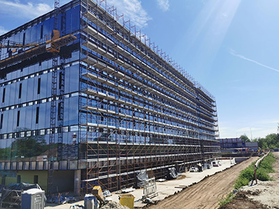 Produsele au fost utilizate pentru susținerea panourilor de perete cortină. Panourile sunt fixate de structura de rezistență a clădirii, aceasta fiind construită din montanți și traverse care susțin sticla, conectate pe bucăți.