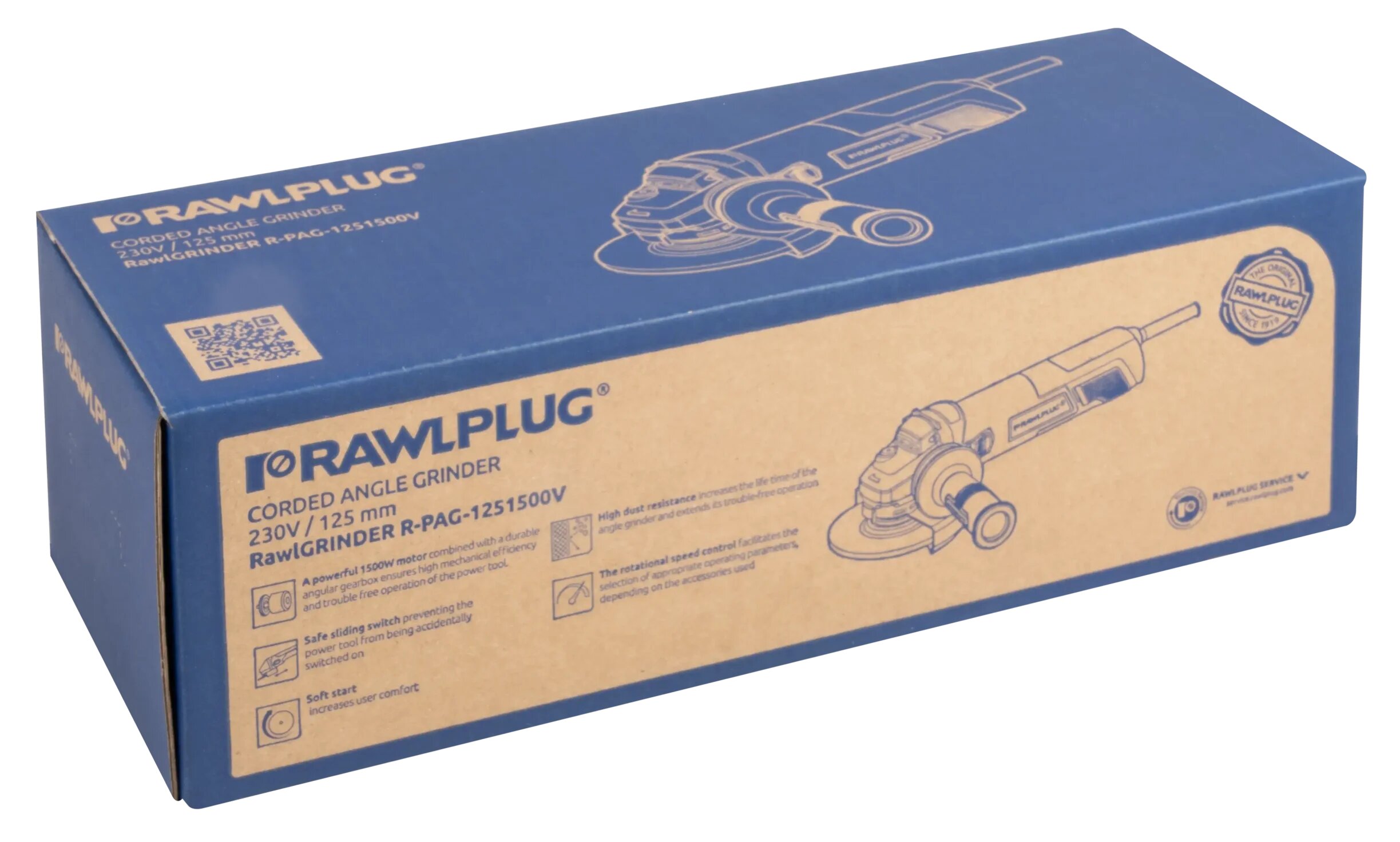 Polizor unghiular pe fir, 125 mm RawlGRINDER, 1500W, cu viteza reglabila, cutie carton