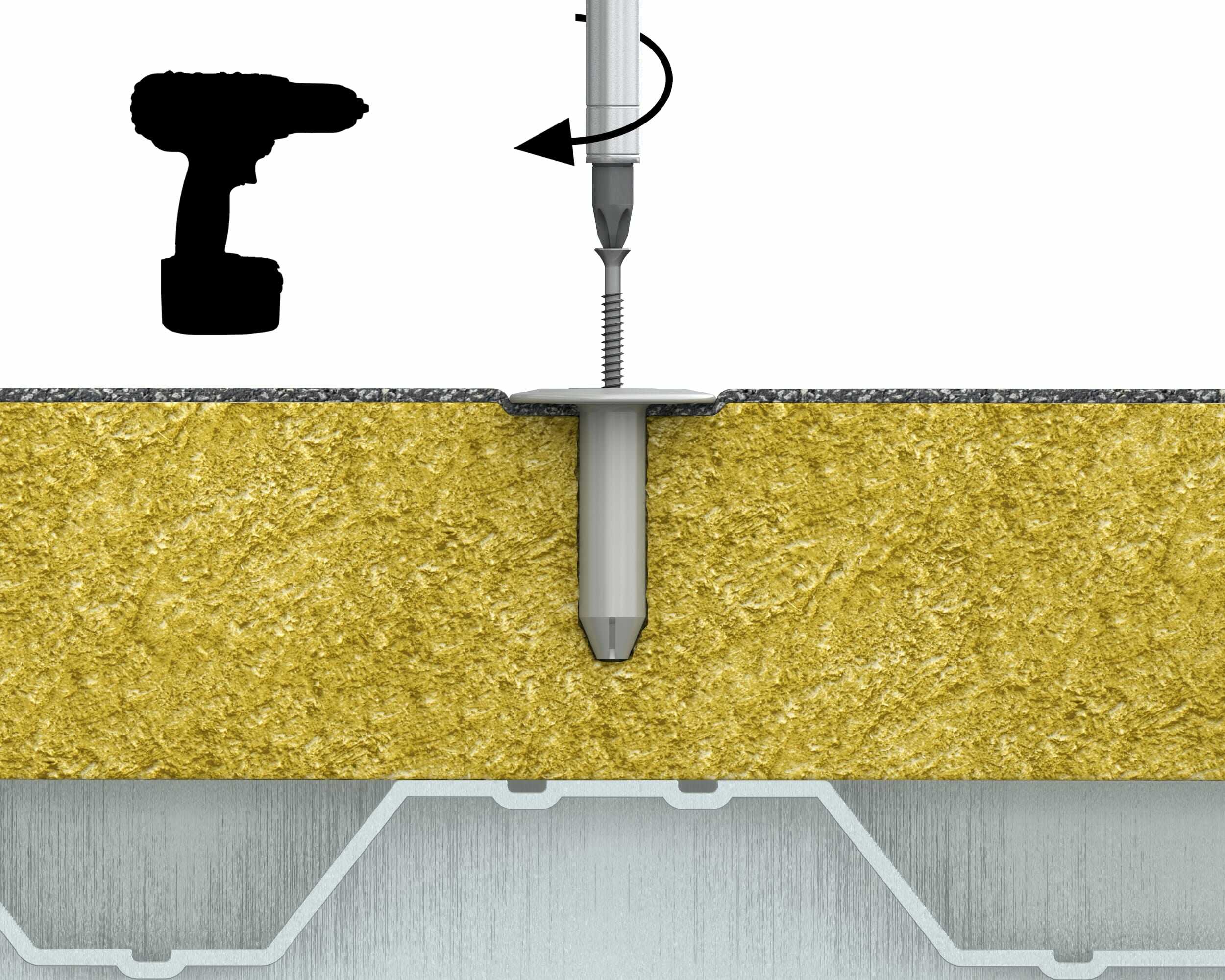 Designul interior al talerului ii permite acestuia pre-asamblarea cu orice șurub de acoperiș Rawlplug, astfel se reduce timpul de instalare